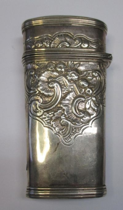 Necessary in silver, rococo, 18th century. Decorated with rocailles, flowers, etc. Without visible stamps. With inscription at the bottom.