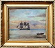 Møller, Thorvald (1842 - 1925) Danmark: Marine. Olie på lærred/opklæbet på pap. Signeret. 24 x 29 cm.Indrammet.