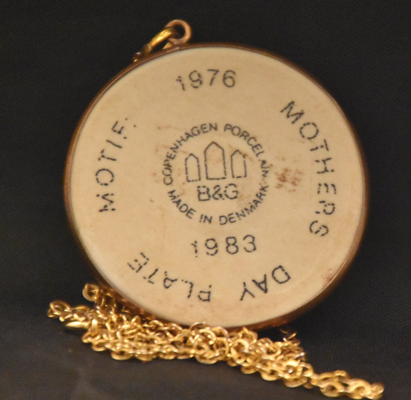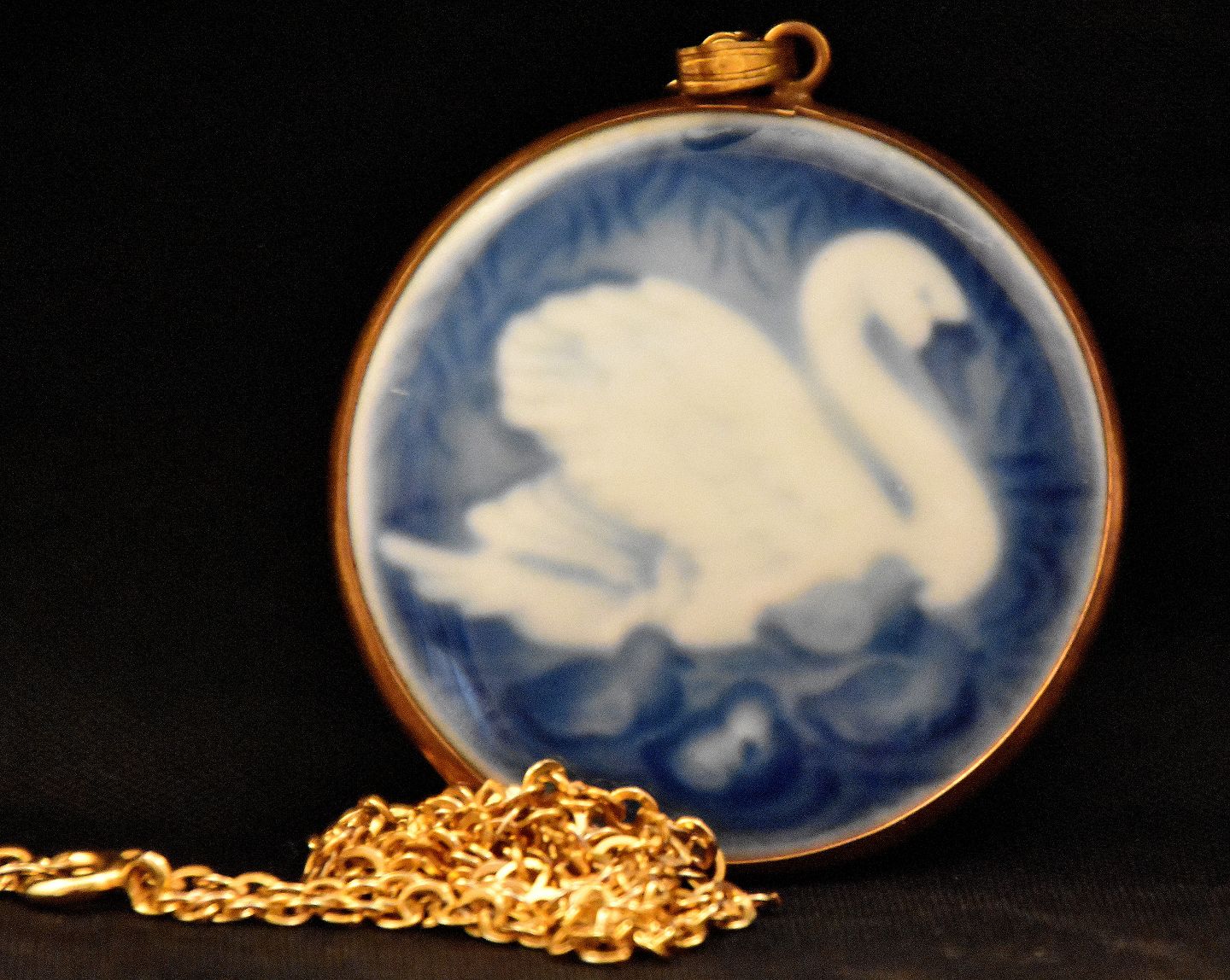 Bing & Grøndahl Kæde + vedhæng med samme motiv som års platten 1976. Svane i med blålig baggrundVægt 16,13g