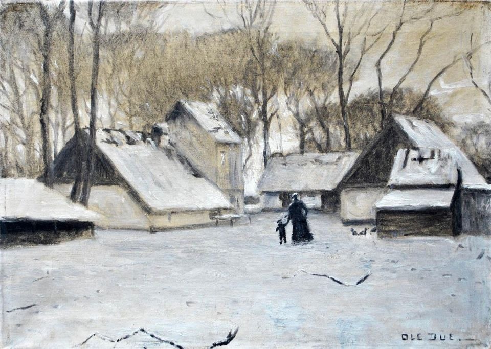Due, Ole (1875 - 1925) Danmark. Scene fra Dyrehaven.Olie på lærred. Signeret. 27 x 37 cm.