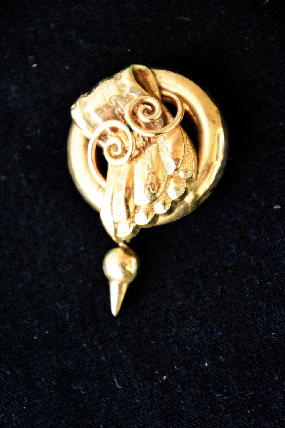 Gammel broche i forgyldt messingØ.: 3,5cm Vægt: 9,81gram