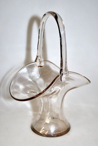 Glass vase in the form of a basket with a handle, clear glass, o. 1900. Denmark. Height: 20 cm. With optical stripes.Item number: 19117