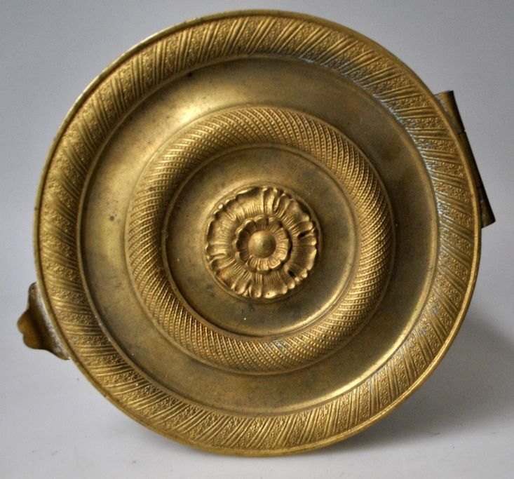 Tobaks krukke med bronzelåg, empire, 19. årh. Med nyere underdel i stentøj. Højde.: 10.5 cm. Dia.: 17 cm. Krukken er signeret.Emne nummer: 19305