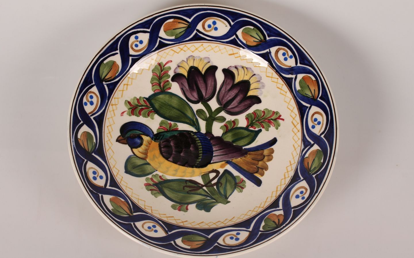 Aluminia FajanceRund fajance skål med fugl dekoreret i forskellige farver