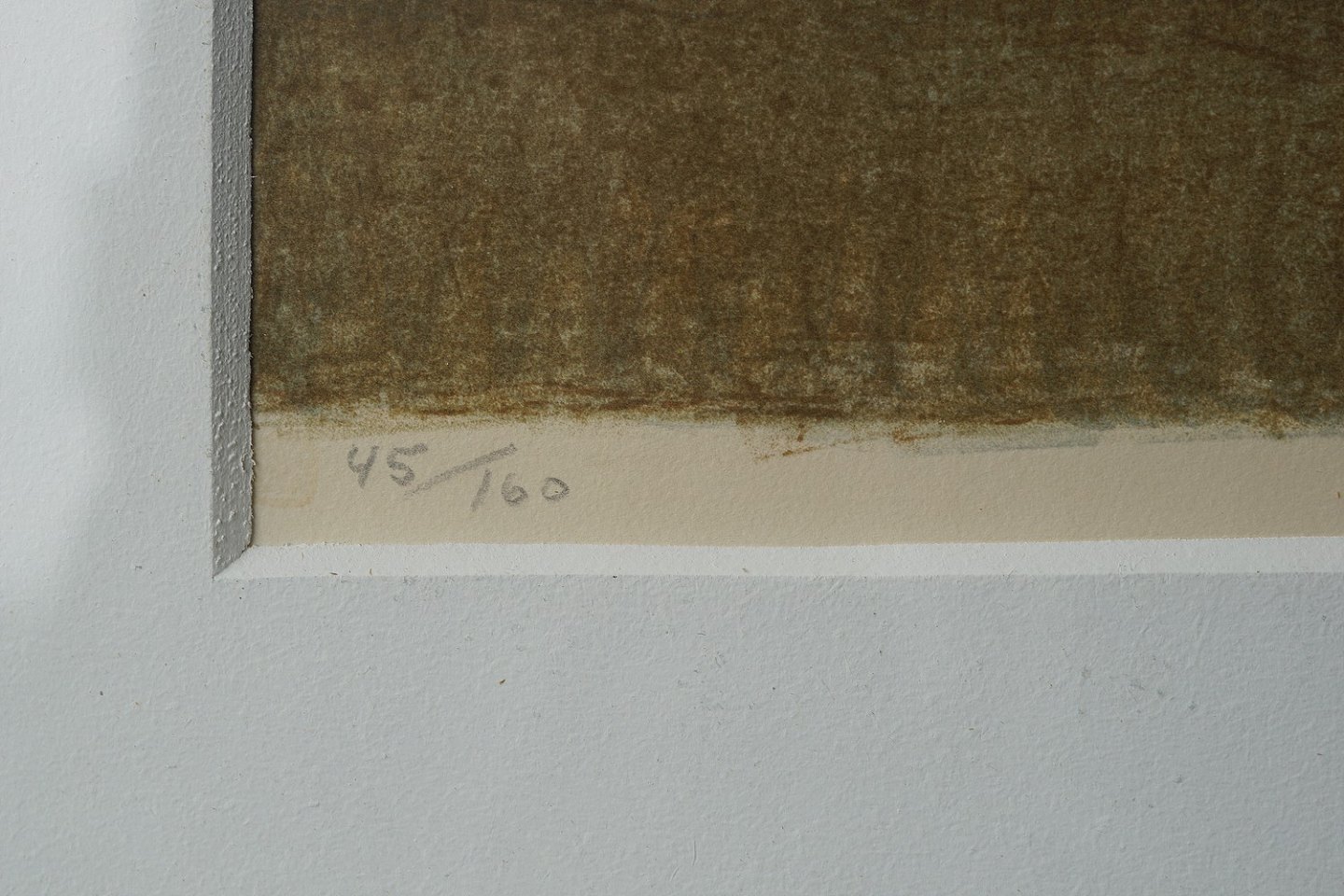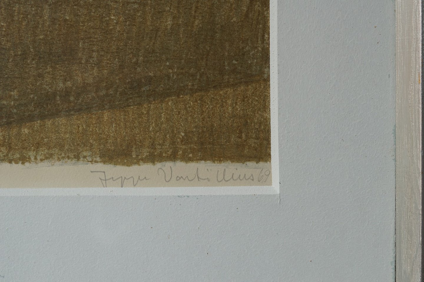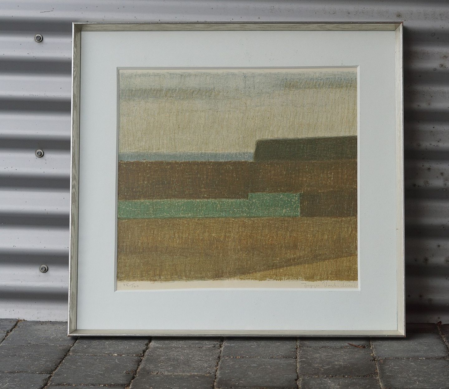 Litografi. Motiv forenklet landskab. Signeret Jeppe Vontillius. Nr. 45/160