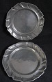 Et par tin tallerkener, 18. årh. Skævknækket rokoko, Tyskland. Stemplet.: I. C. R. Zinn, 1742. Stemplet med basunspillende engel. Tre stempler på hver.Emne nummer: 4997
