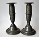 Par antikke tin stager, 19. årh. Stemplet: PIR - OST. Højde: 20,5 cm. Under bund inskription.NB: Den ene stage har buler.
