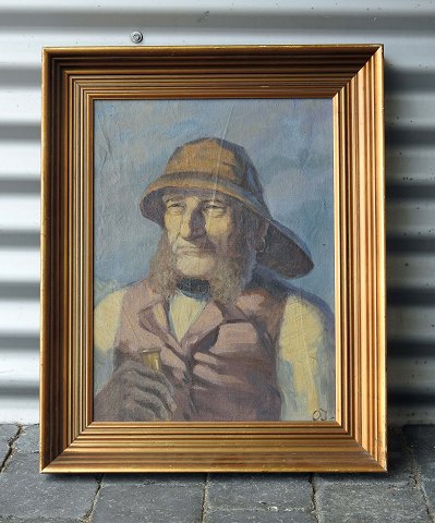 Portrætmaleri med motiv af fisker.Olie på lærred.
