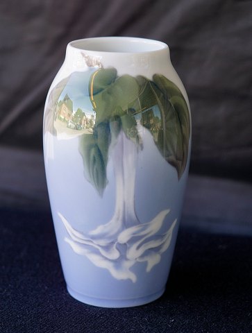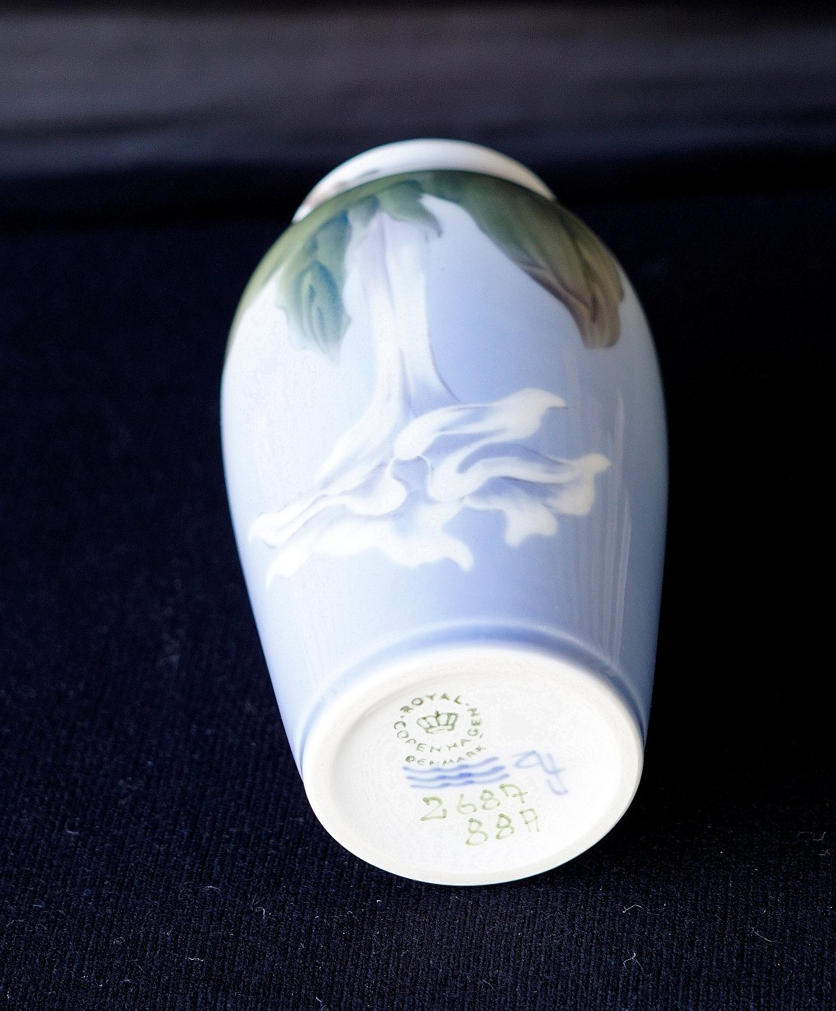 Royal Copenhagen, vase 2687/88-5. Dekoration blomst med grønne blade. Den affotograferet er mærket 88ADesign Royal Copenhagen