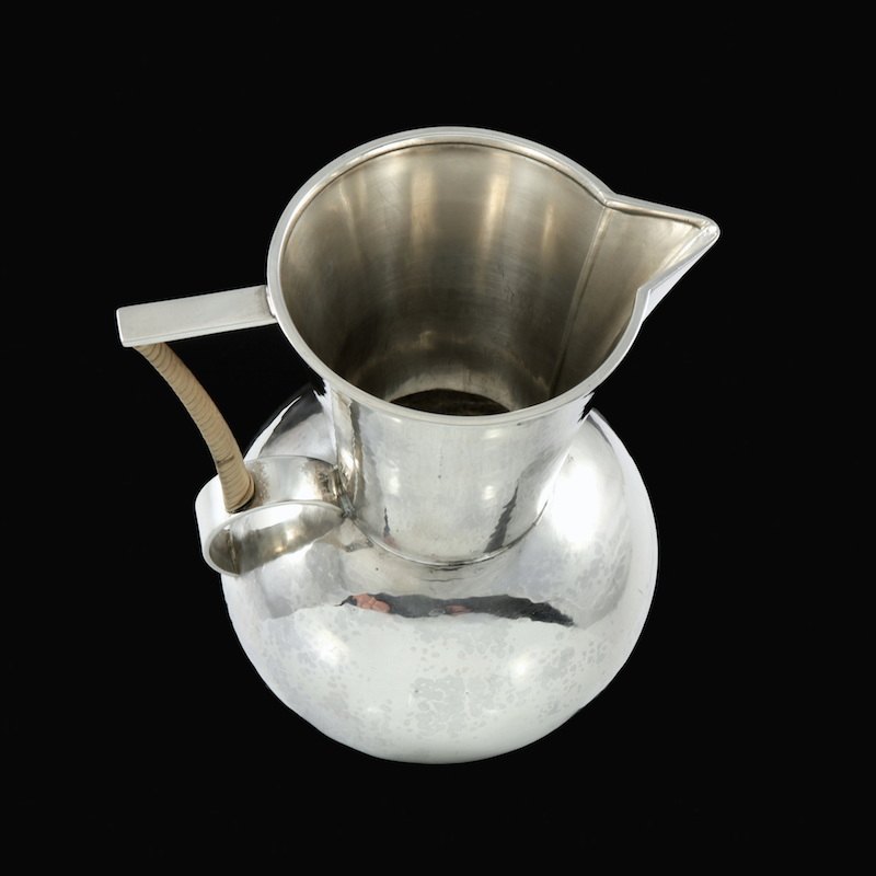 Karl Gustav Hansen. Art deco Sterling Silver Pitcher #132 - 1933.Handle with original Cane Wicker.