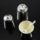 Karl Gustav Hansen. Cruet sæt i sterling sølv. #390. Anno 1953Saltkar med emalje med saltske 'Arvesøv nr. 18'
