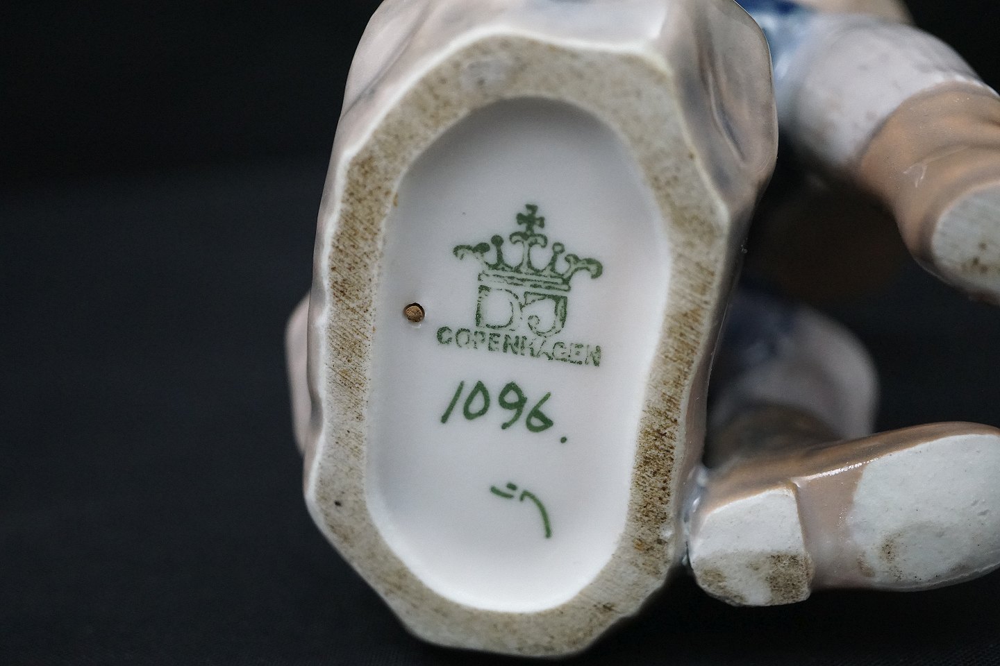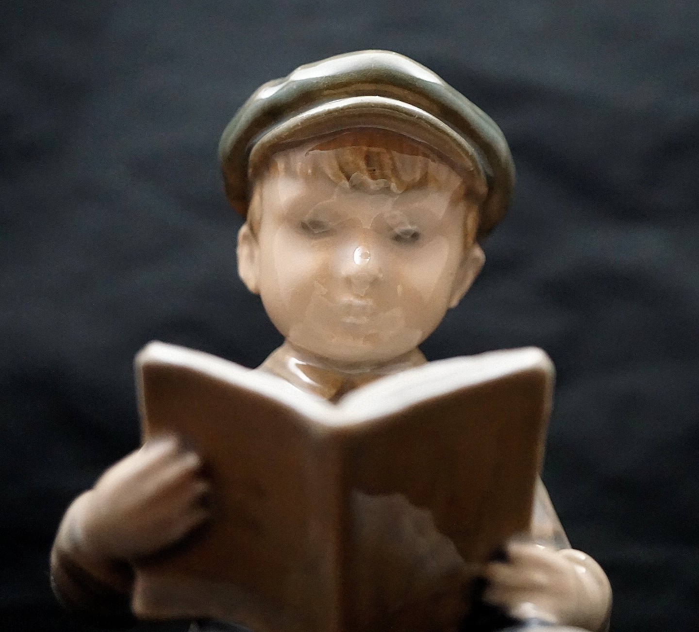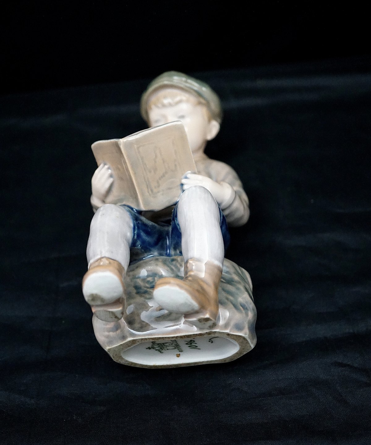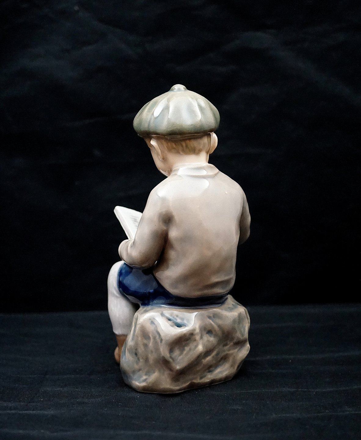 Dahl Jensen figur, Læsende Dreng, nr. 1096. Porcelænsfiguren er i 1. Sortering. Dreng med stor hat læser bog. Design: Jens Peter Dahl Jensen