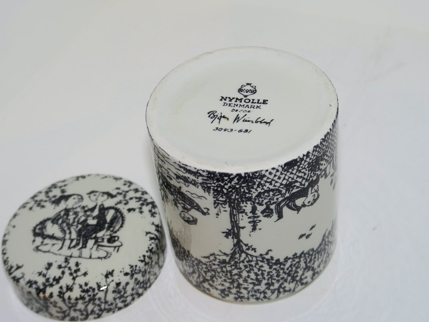 Nymolle art pottery, Bjorn Wiinblad, lidded jar.Decoration number 3043/681.