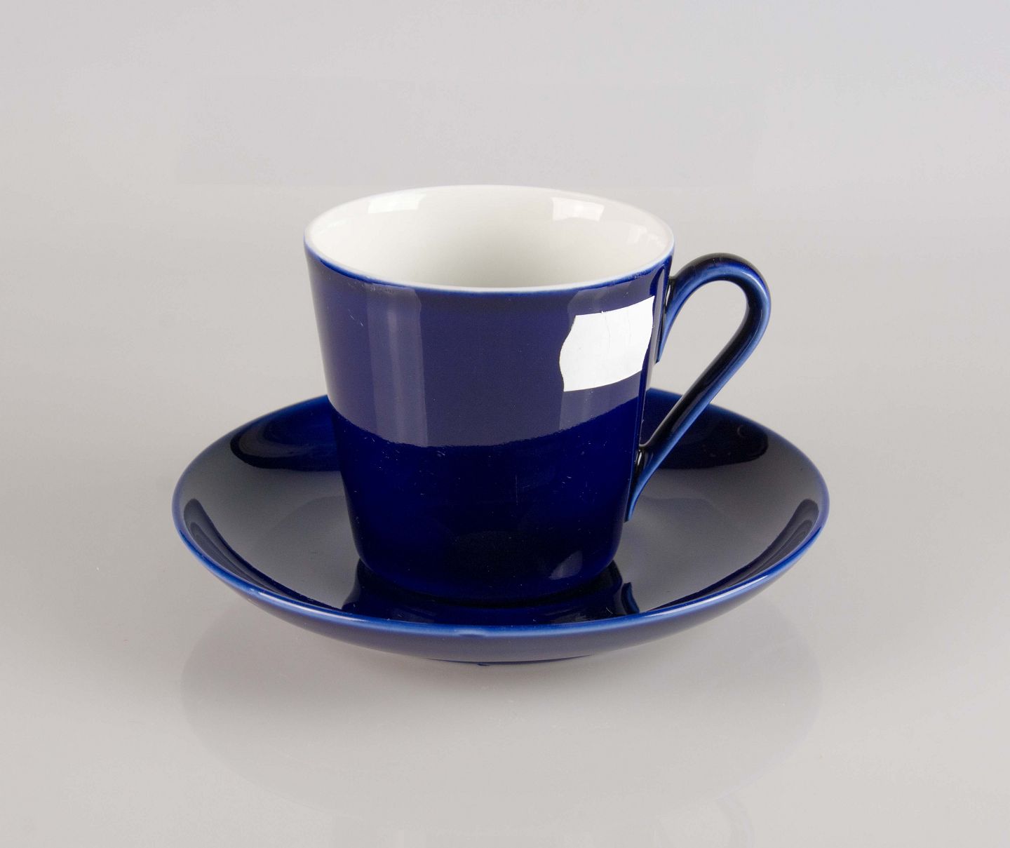 Kaffekop i stellet Blå glasurfarvetProduceret af Porcelænsfabrikken Danmark