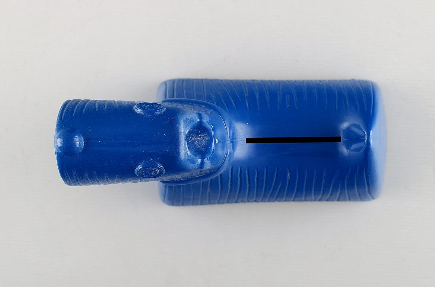 Stig Lindberg money box, blue Scottie. Made of hard plastic.Designed for Handelsbanken's 90th anniversary in 1961.