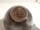 Saxbo miniaturevase med gråsort, spættet glasur. Buttet med lille åbning. Mærket Yin Yan Danmark og et utydeligt enkelt V eller W, måske et drejermærke. Formentlig Eva Stæhr-Nielsen (født Wilhjelm). Højde: 6,4 cm. - bredeste mål: 6,9 cm. I fin stand Udstiller