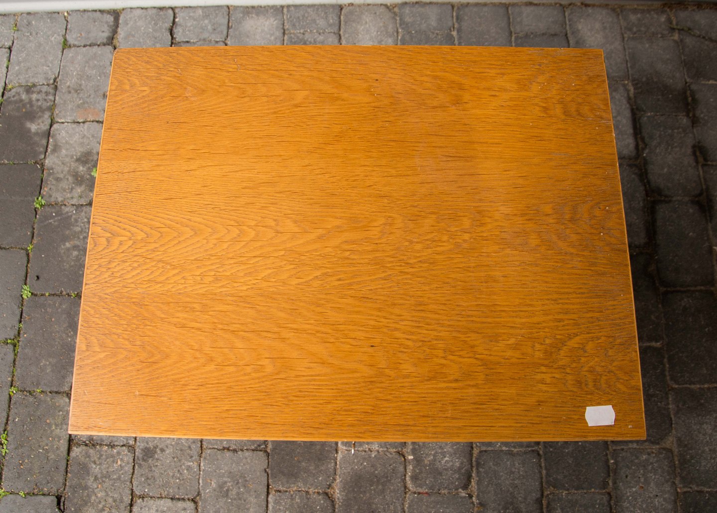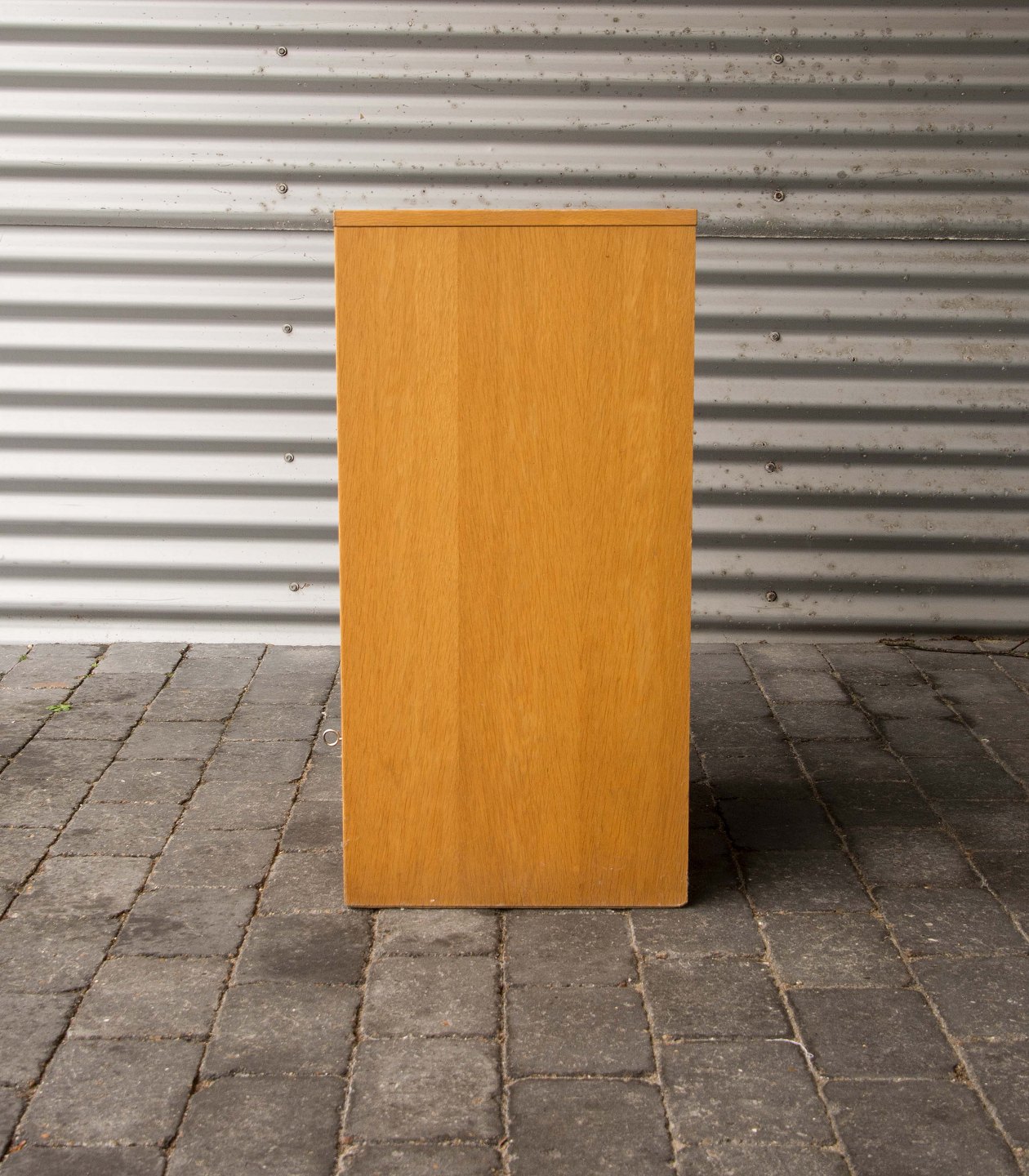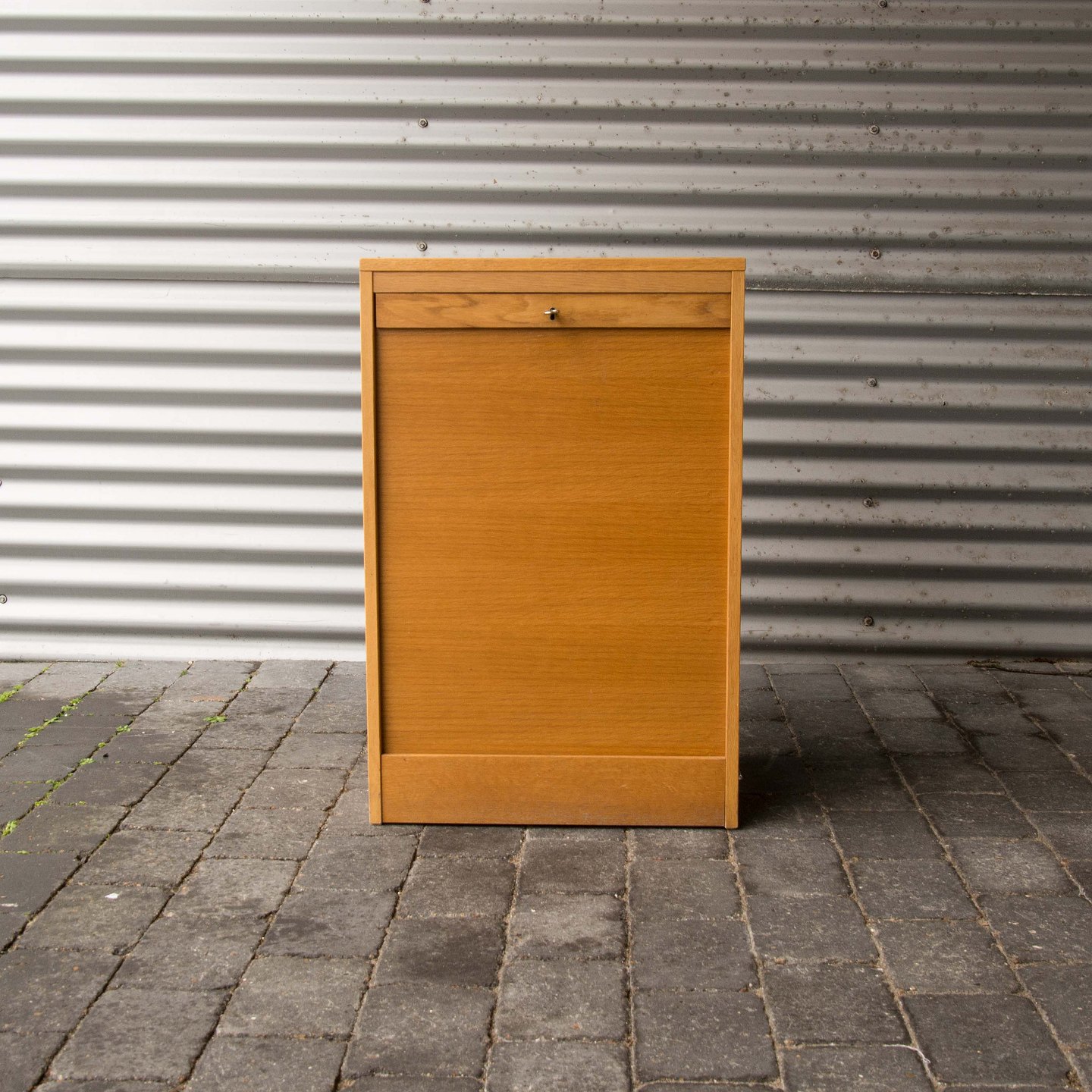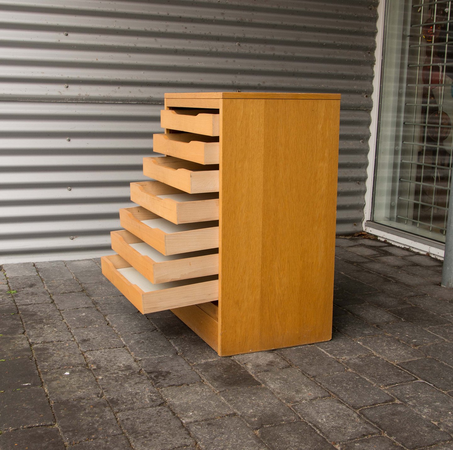 Arkivskab i lakeret egetræ med syv skuffer og jalousilåge
