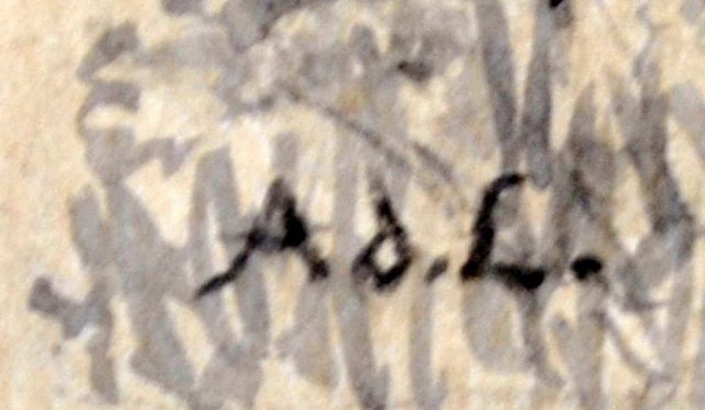 Larsen, Adolph (1856 - 1942) Denmark: A trumpet plaind boy - probably a scout at a grave mound. Ink on paper. Signed: Ad. L. 13 x 10.5 cm.Item number: 21469