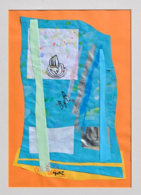 Nakajima, Yoshio (1940 -) Sweden / Japan: Summer is here. Collage. Signed 2015. 40 x 30 cm.Framed