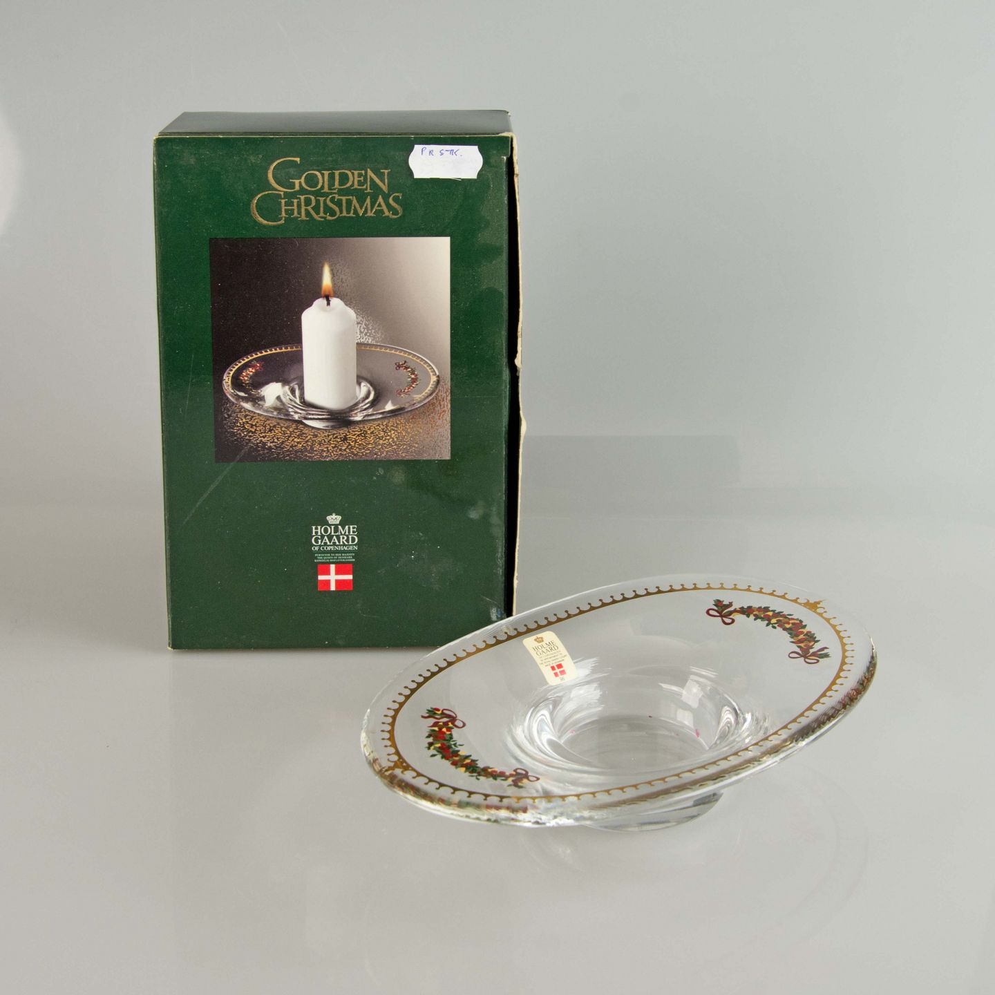 Kalenderstager i glas med juleudsmykning.Produceret af Holmegaard