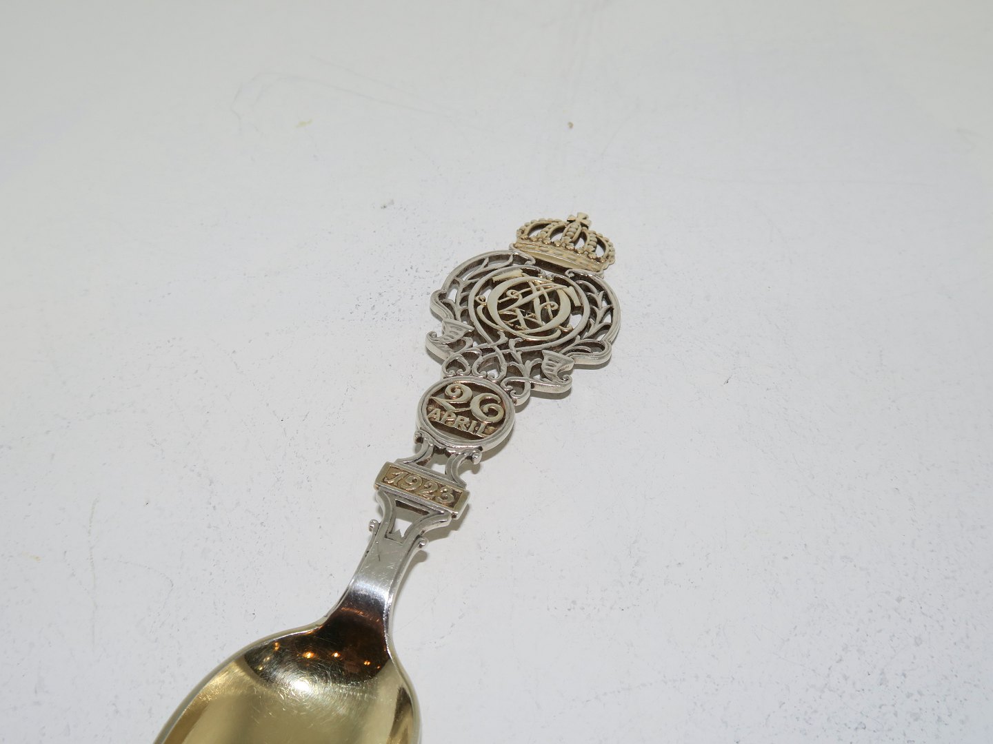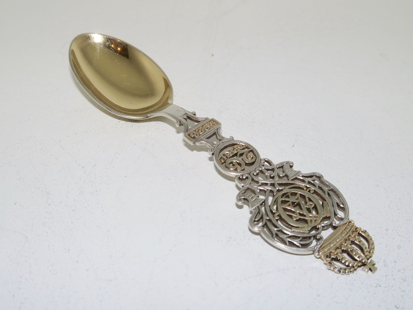 Anton Michelsen guilded sterling silver, commemorative spoon from 1940.The 70th birthday of King Christian X.