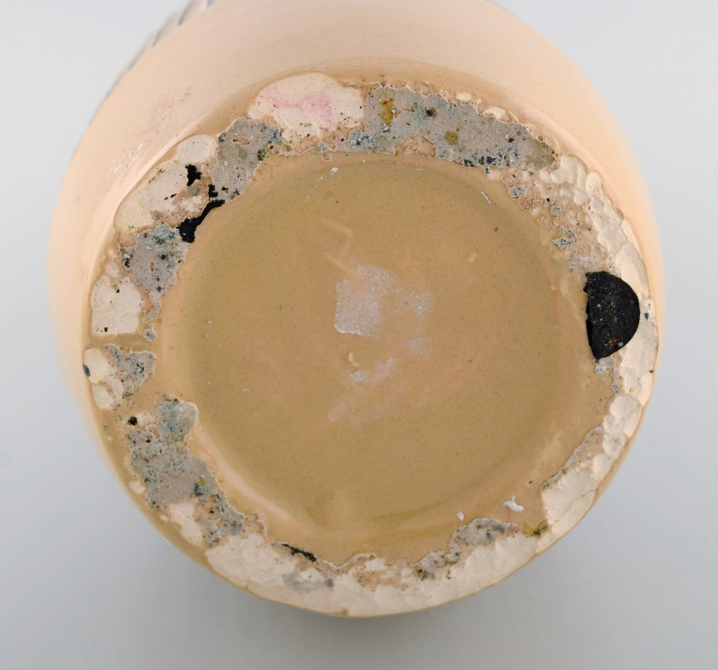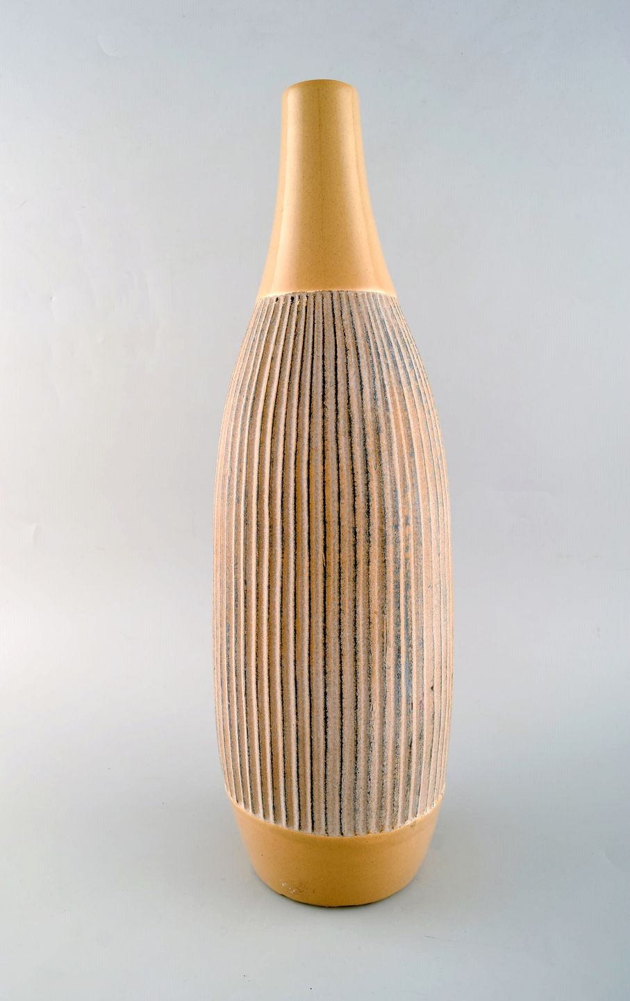 Skandinavisk keramiker. Stor vase i glaseret keramik med rillet korpus. Sent 1900-tallet.Måler: 45 x 14 cm.