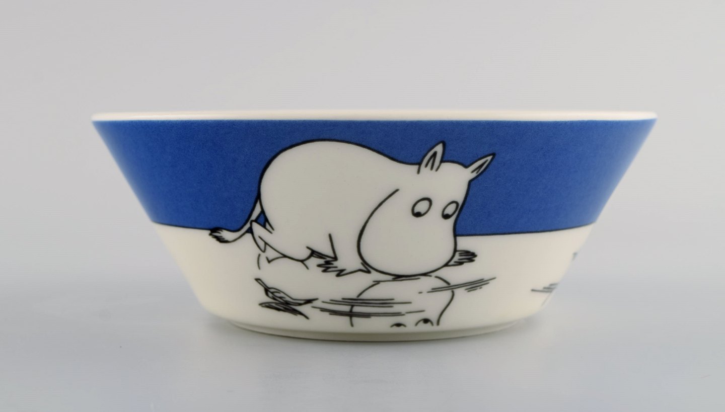 Arabia, Finland. Fire skåle i porcelæn med motiver fra Mumitroldene. Sent 1900-tallet.I flot stand.