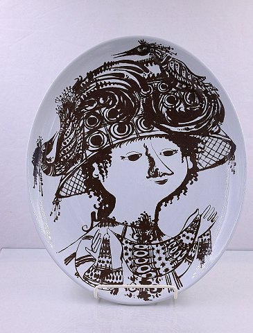 Bjørn Wiinblad platte nr. 3071-462."Gwendolen Fairfax" er en oval platte, der også kan bruges til ophængDesign Bjørn Wiinblad, for Nymølle