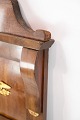The Late Empire mahogany mirror, winged with elegant gold leaf, dates back to around 1840 and exudes a distinguished elegance and historical value. The mirror's sophisticated design and artistic details make it a remarkable piece of antique that adds culture to any room.The mirror's mahogany frame, with its delicate carvings and fine details, bears witness to the craftsmanship and elegance of the Late Empire period. The warm tone and shiny finish of the wood add an aura of luxury and sophistication to the room, while the golden leaves add a touch of aristocratic glamour.