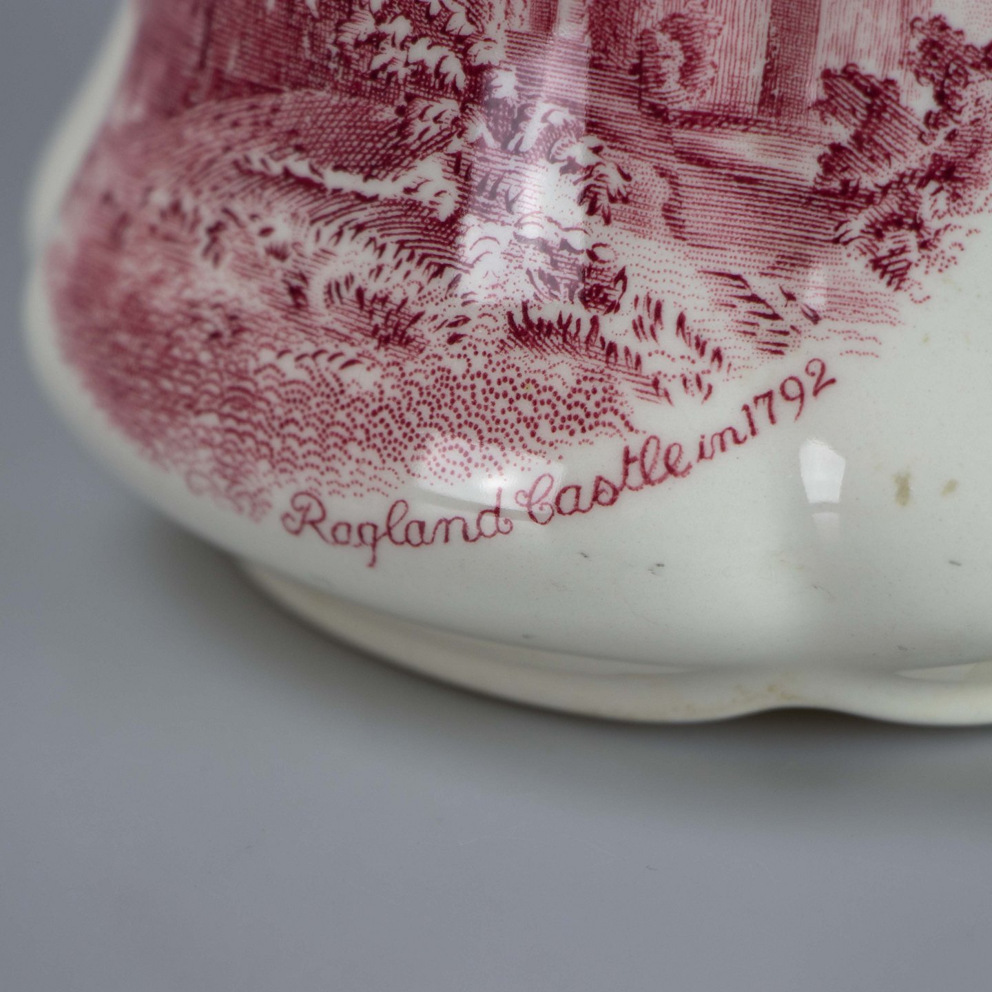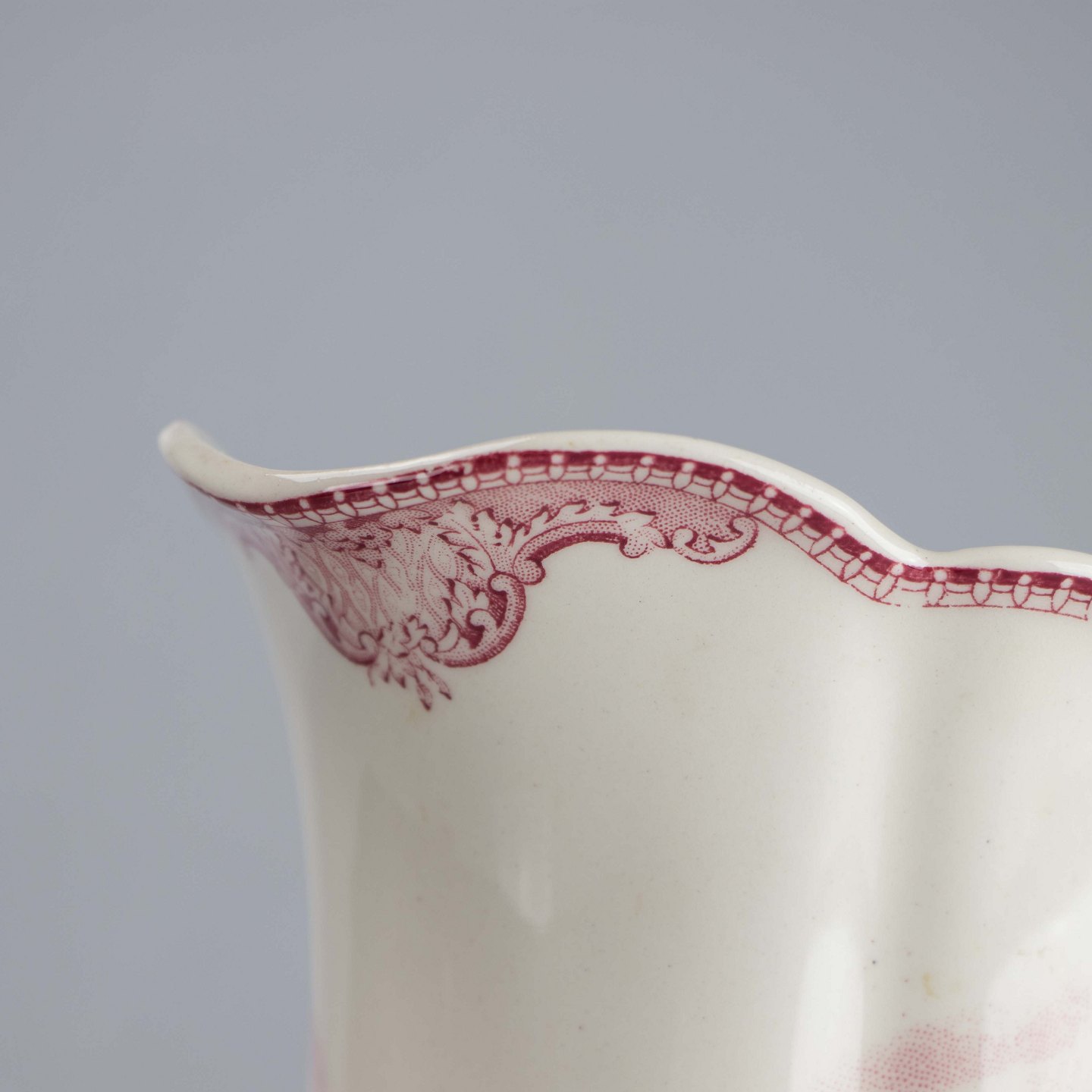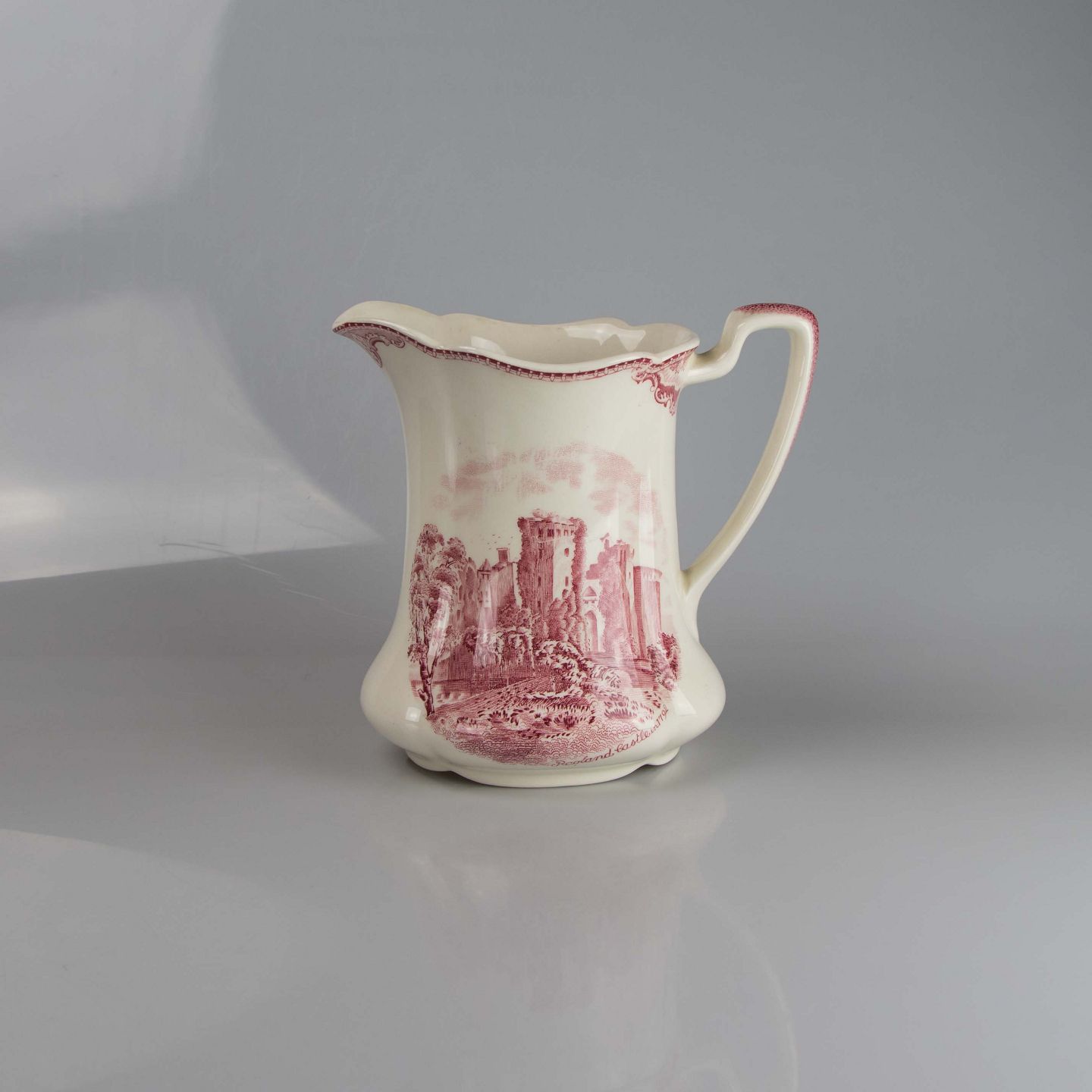 Kande i lys fajance med røddekoreret slotsmotiv.