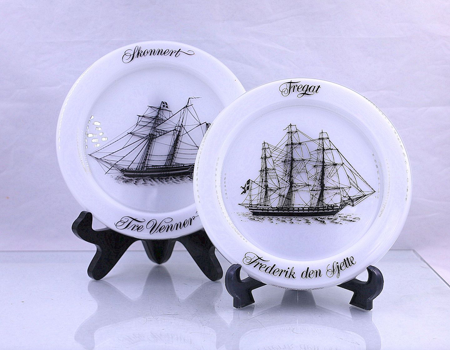 Holmegaard Glasværk, 2 stk. skibsplatterSkonnert, Tre Venner, 1972, efter tegning af D.A.Teupken.