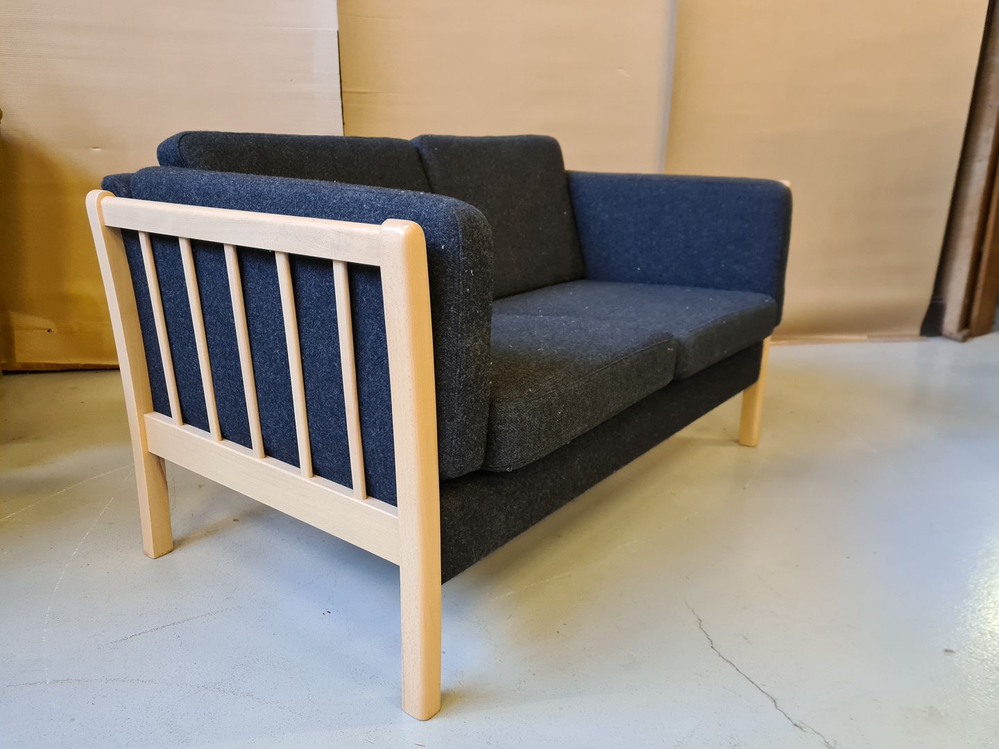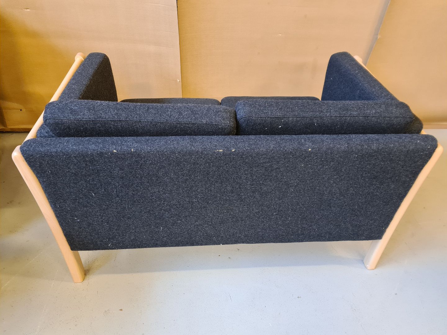 Sofa i bøgetræ med hynder i sort uld betræk fra 1990erne.Den her skader på ryggen.