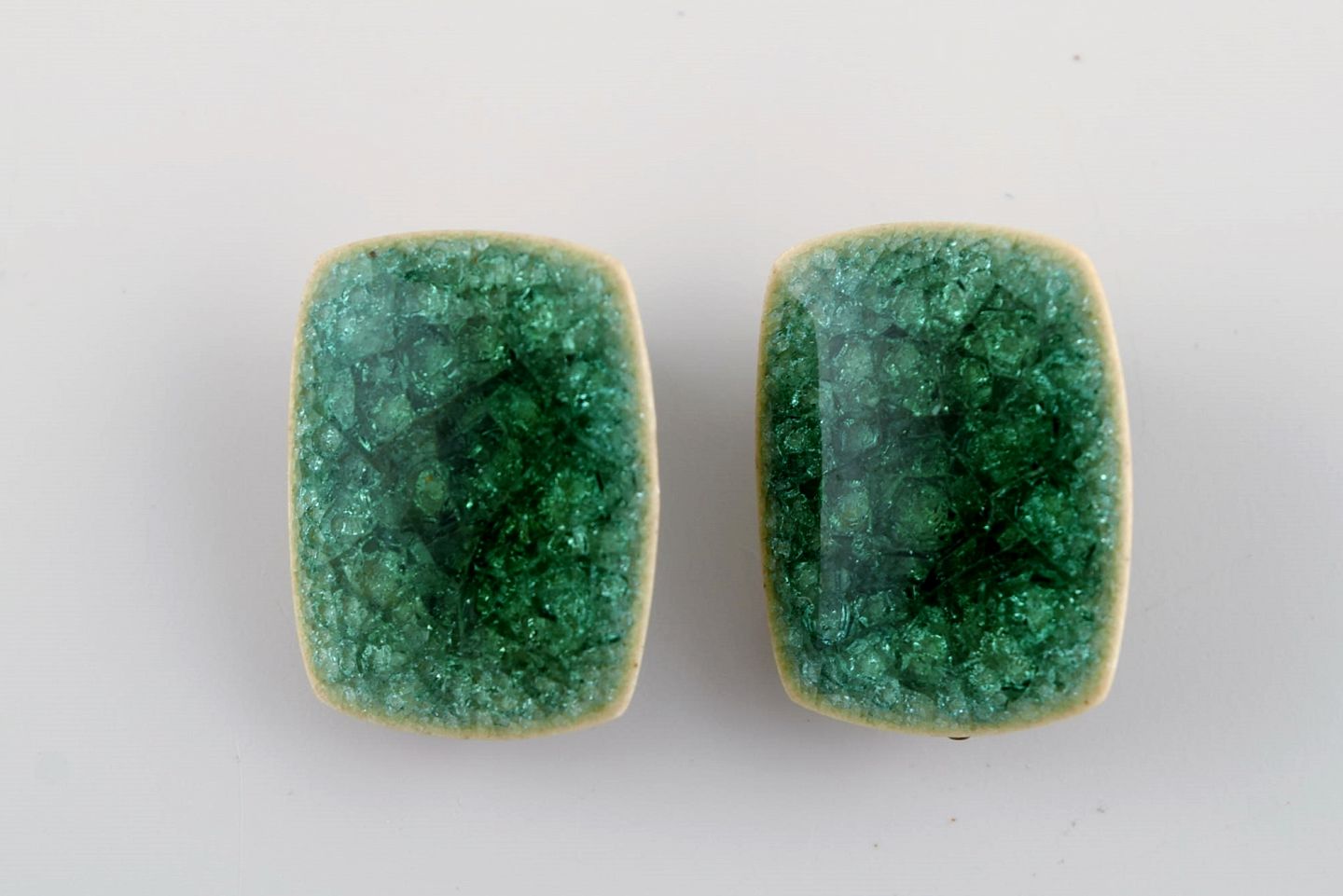 Ole Bjørn Krüger (1922-2007), Danish sculptor and ceramicist. Three pairs of unique ear clips in glazed stoneware. Beautiful glaze in blue and green tones. 1960s / 70s.Measures: 2 x 1.5 cm.