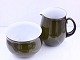 Holmegaard Glasværk. Mørkegrøn palet kande + skål, kanden er med påsat hank. Hvidt opalglas med mørkegrøn overfang.Der er ingen brugsspor på kanden eller skålen