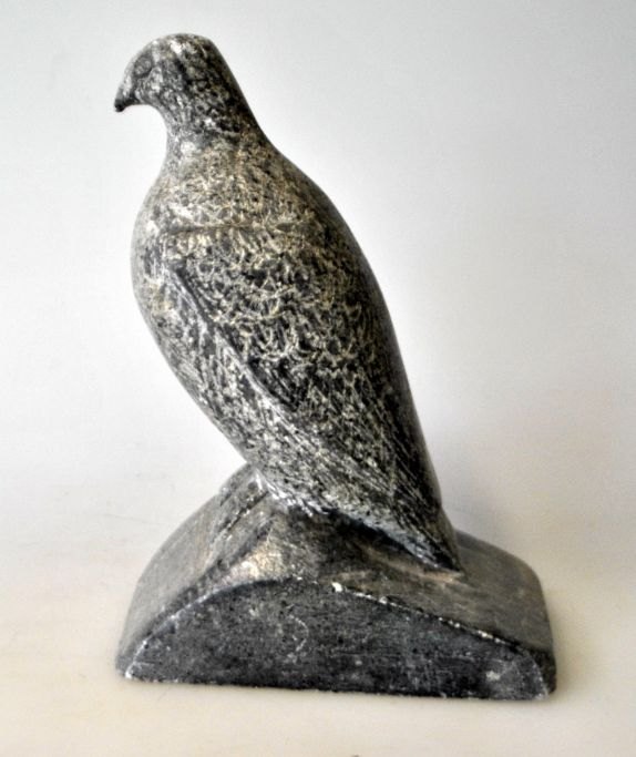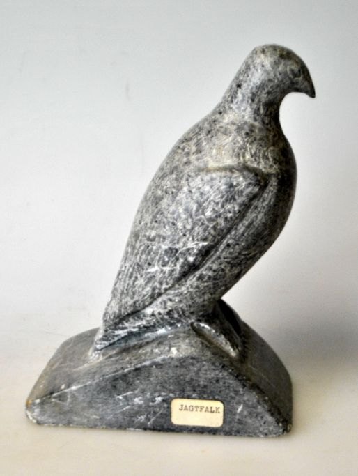 Grønlandsk fedtstensfigur, 20. årh. En jagtfalk. Signeret: Josef Josefsen Kapst 77. H.: 12 cm.Perfekt stand!