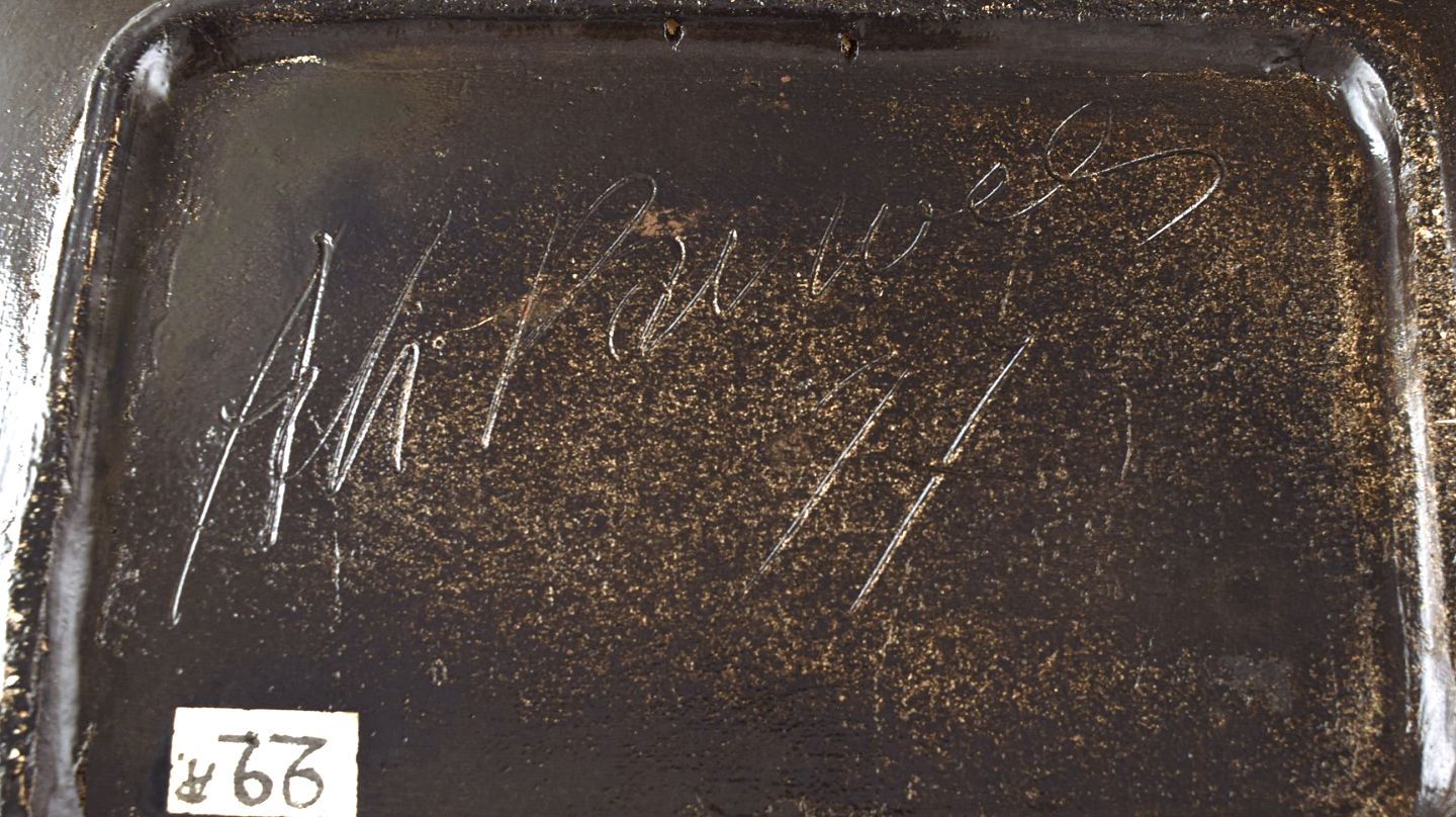 Achiel Pauwels (b. 1932), Belgium. Unique dish in glazed hand-painted ceramics. Naked woman and dove. Dated 1974.Measures: 40.5 x 32 x 3.5 cm.