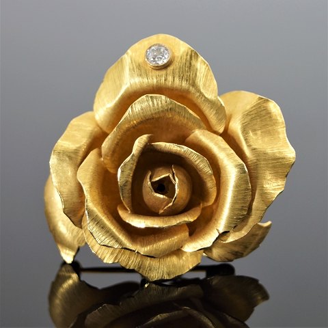Carl Antonsen gold jewellery.Rose brooch made in 18k gold, set with diamond, 0.25 ct.