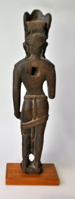 Antique Indian wooden figure of standing man, 18./19. On the newer plinth of mahogany. NB: Part of arm is missing. Mounting hole in the back.Item number: 23023