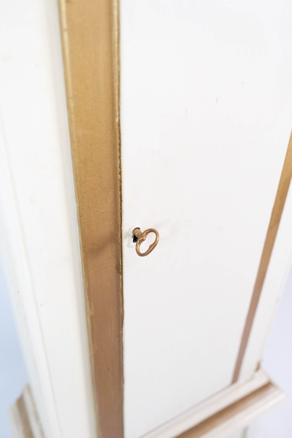 Grandfather clock of white painted wood decorated with gold, in great antique condition from the 1820s.H - 197 cm, W - 54 cm and D - 24 cm.