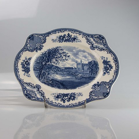 Stort kantet fad i engelsk fajance fra stellet Old Britain Castles blueProduceret af Johnson Bros., England