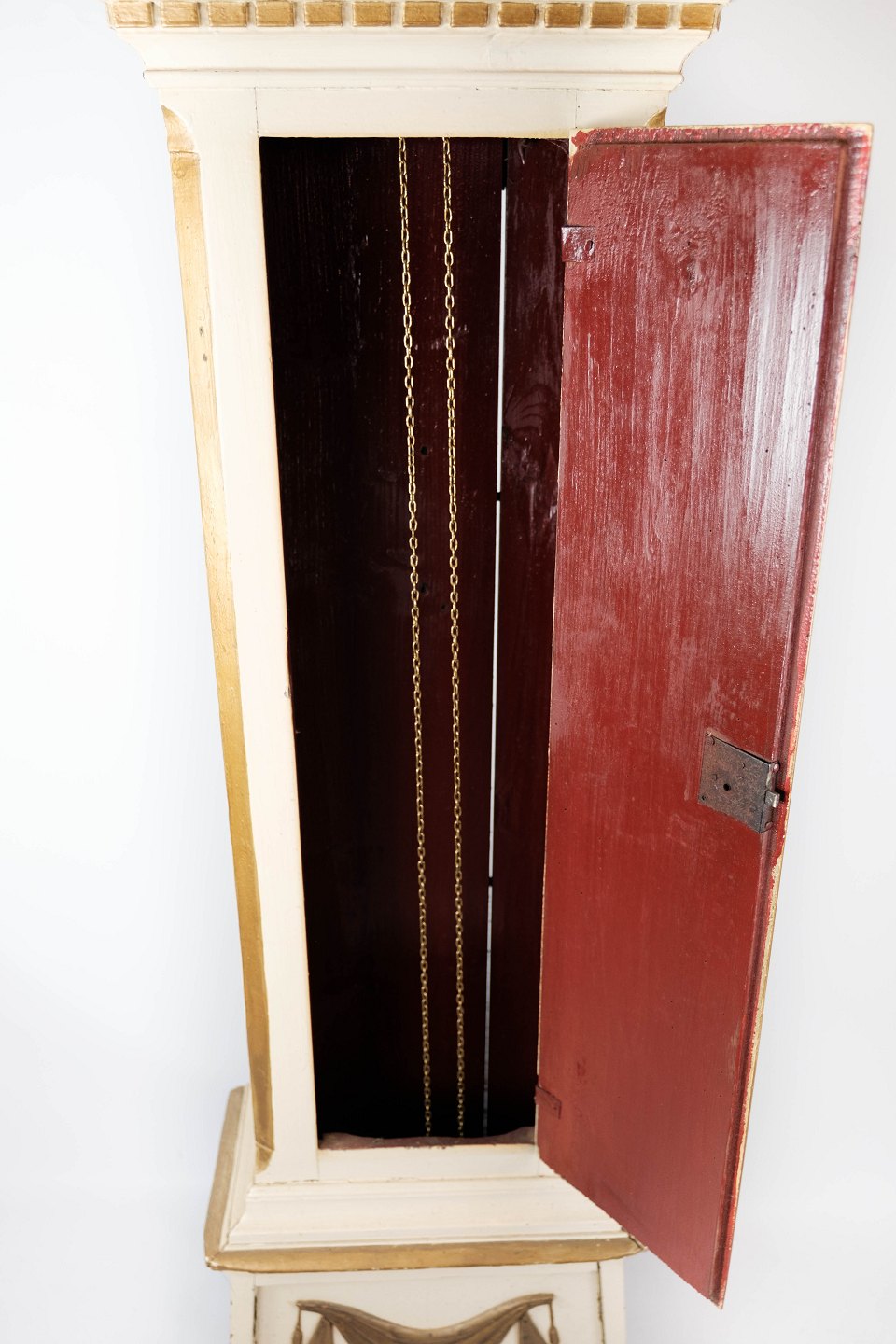 Bornholmerur af hvid malet træ og dekoreret med guld fra 1820erne.Uret er i flot antik stand.