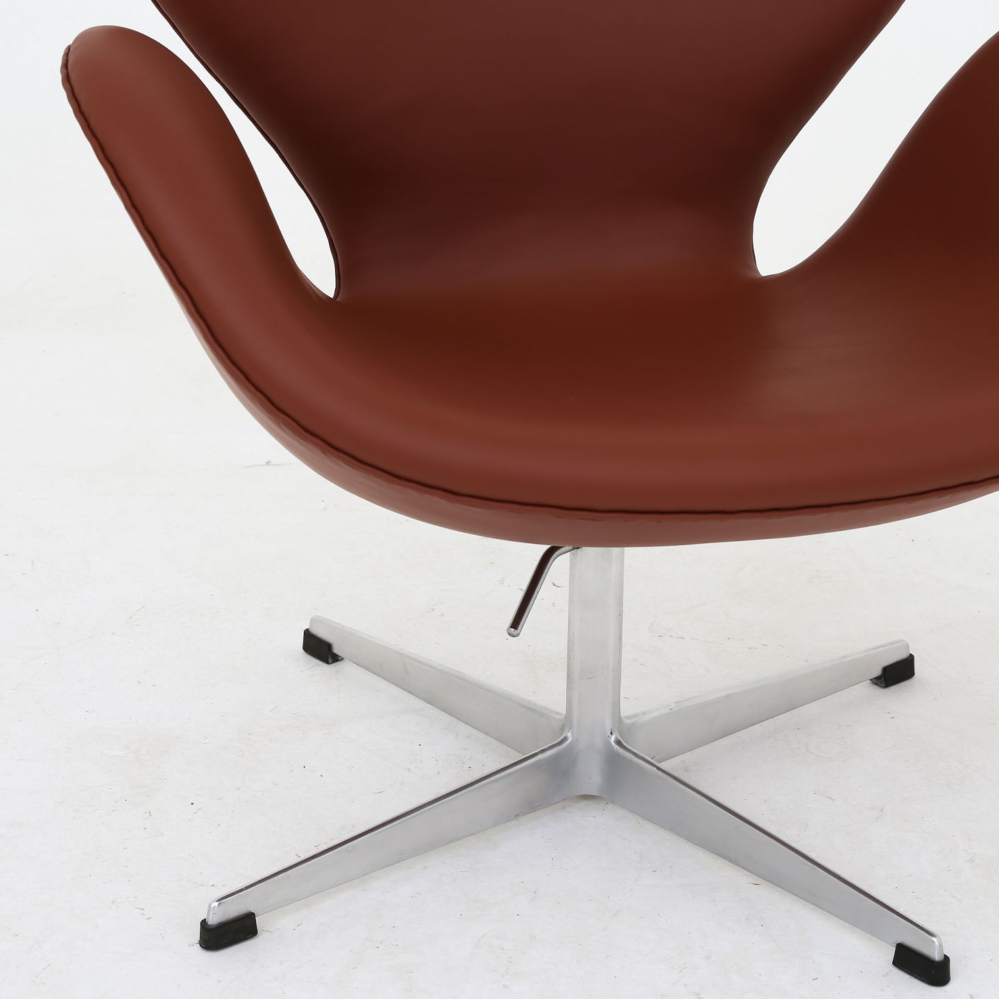 AJ 3220 - Reupholstered 'Swan' easy chair in Savanne leather (color: Tan, 30331) with aluminum base.