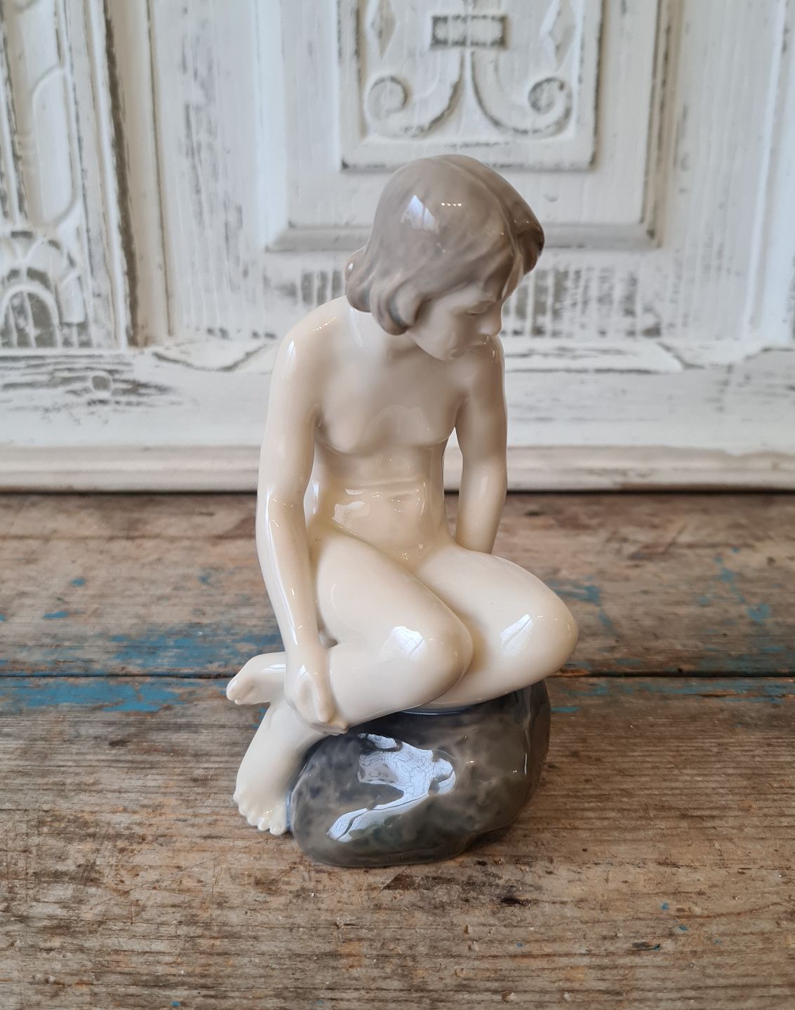 Royal Copenhagen figur - Nøgen pige på stenNo. 4027, 1. sortering