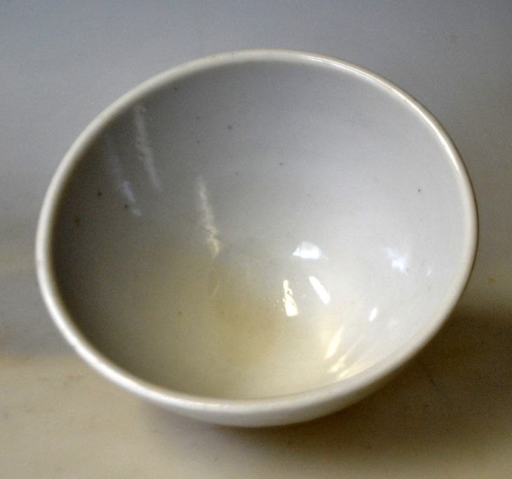 Rare latex rubber collect cup of porcelain, approx. 1940 from Firestone Plantation, Liberia. H. 8.5 cm. Dia: 12 cm On the page the text Firestone D - 1 (area). The Firestone Plantation in Harbel, Liberia, is the world's largest contiguous rubber plantation, established in 1926. Owned by Bridgestone, USA. Provenance: The Director.Item number: 23597