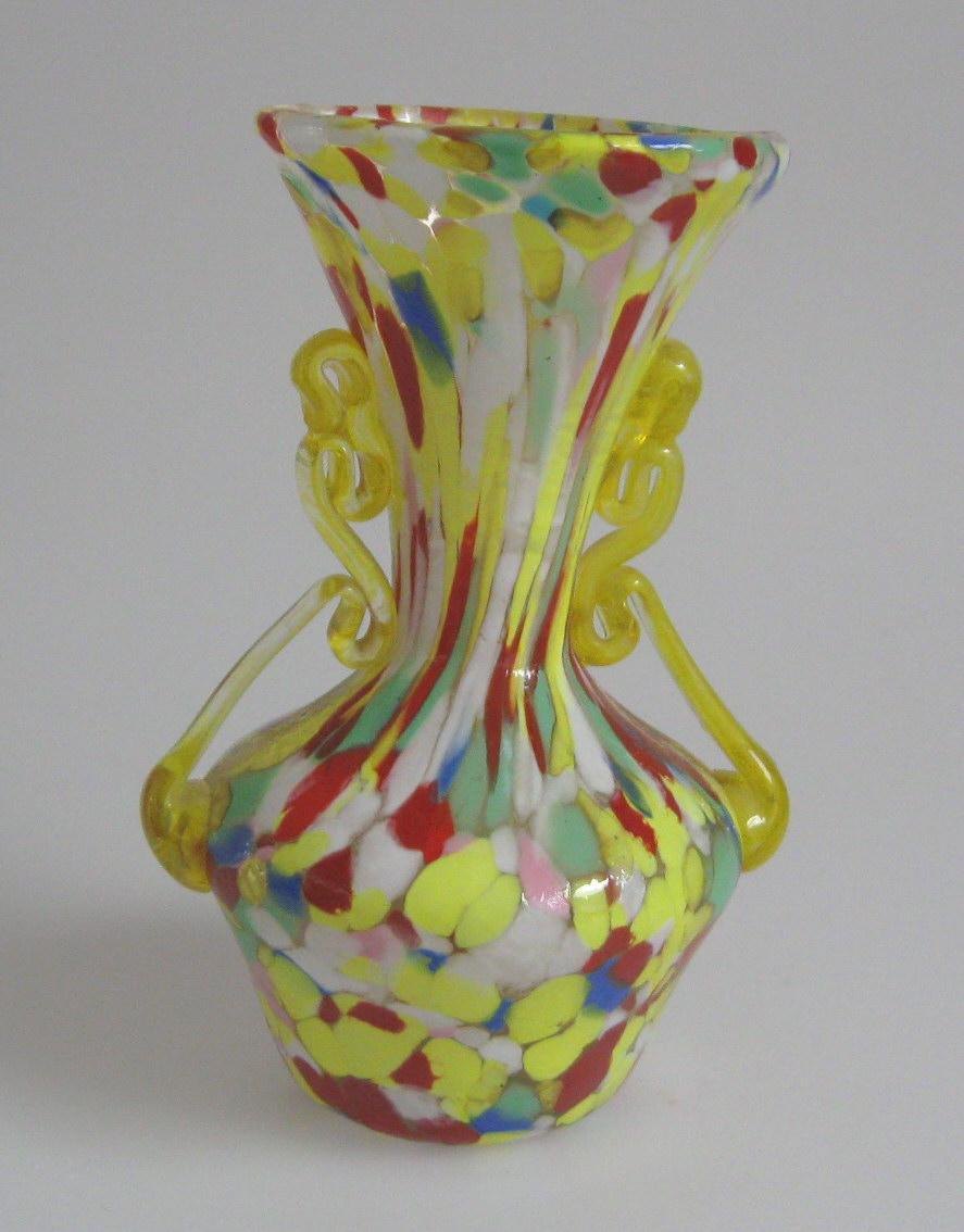 Italian vase, in multicolored glass, with handles in yellow glass. 20th century Venice. H .: 15 cm.Item number: 3376
