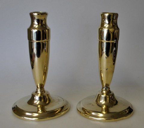 Et par sjældne danske messingstager, 19. årh. stemplet.: Lassen. Højde: 16 cm.