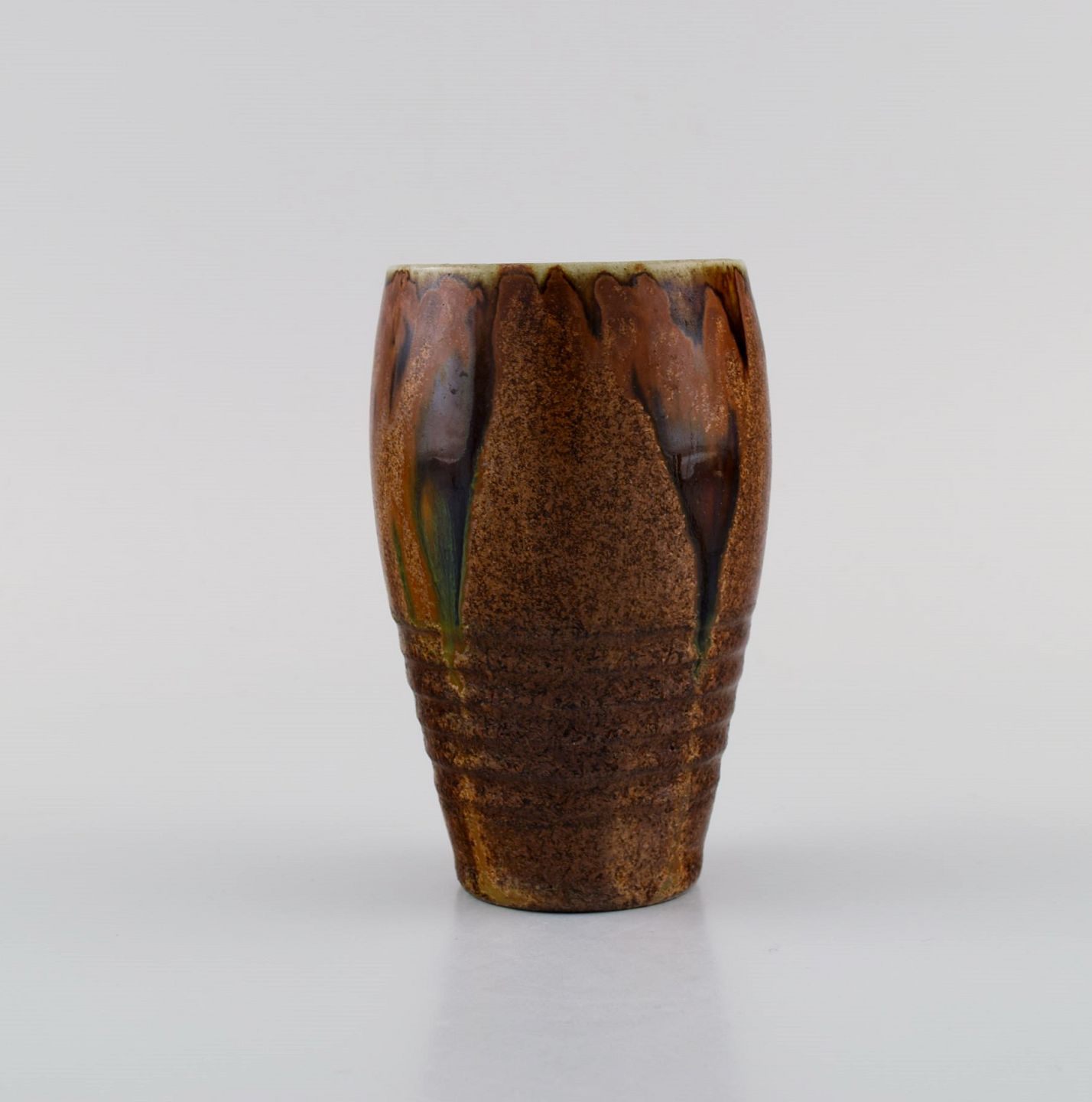 Felix-Auguste Delaherche (1857-1940), Frankrig. Vase i glaseret keramik. Smuk glasur i brune og mørke nuancer. 1920'erne.Måler: 11,5 x 7,5 cm.