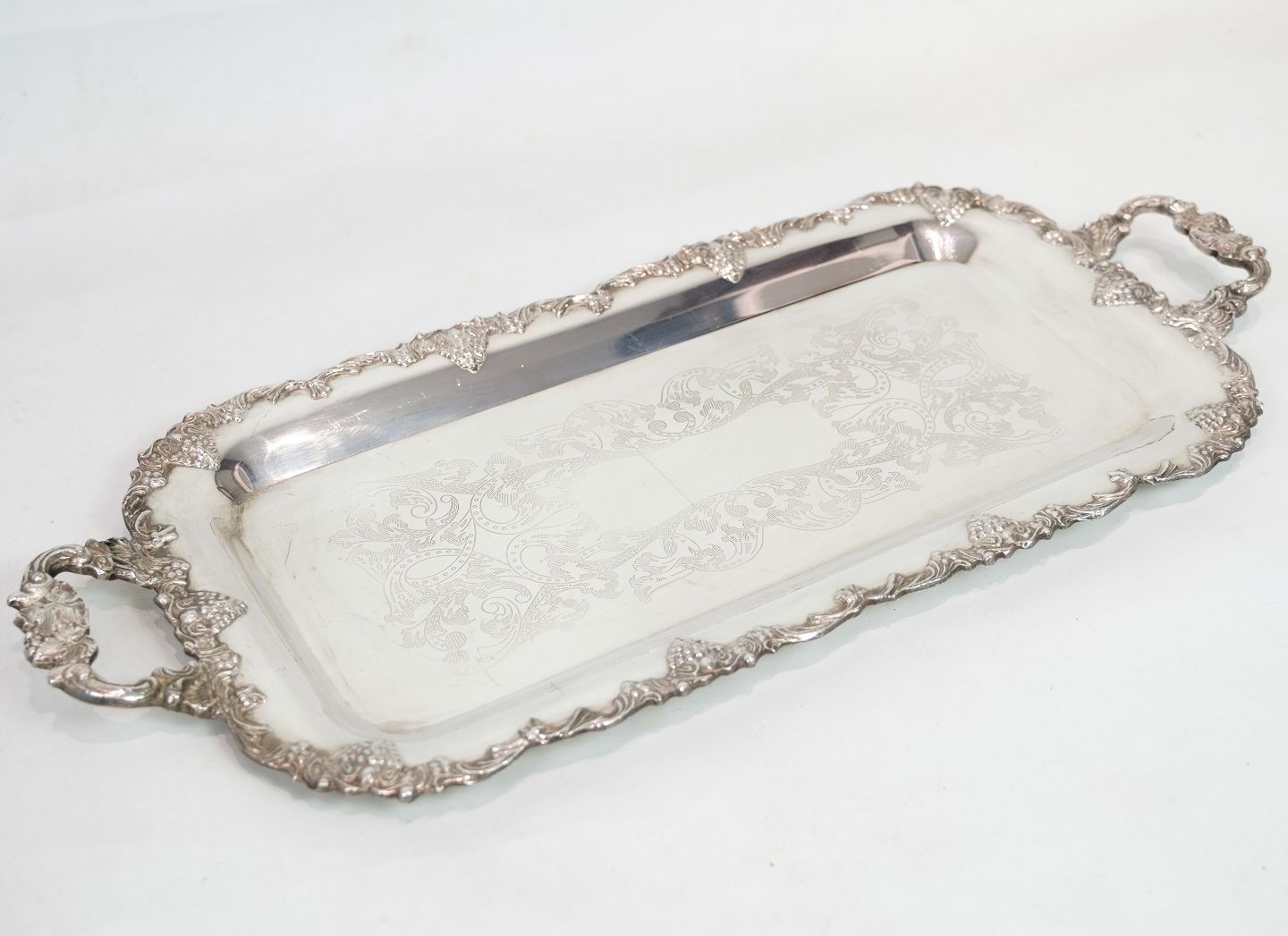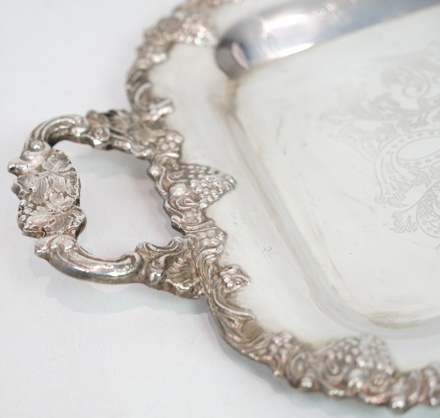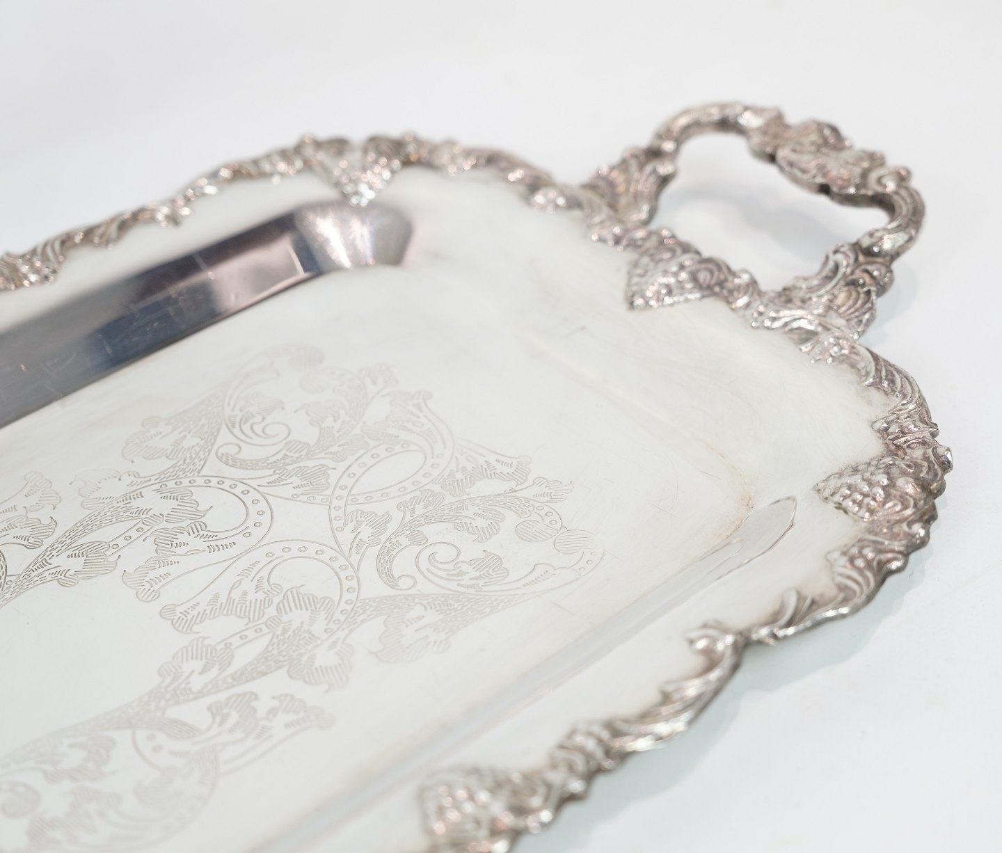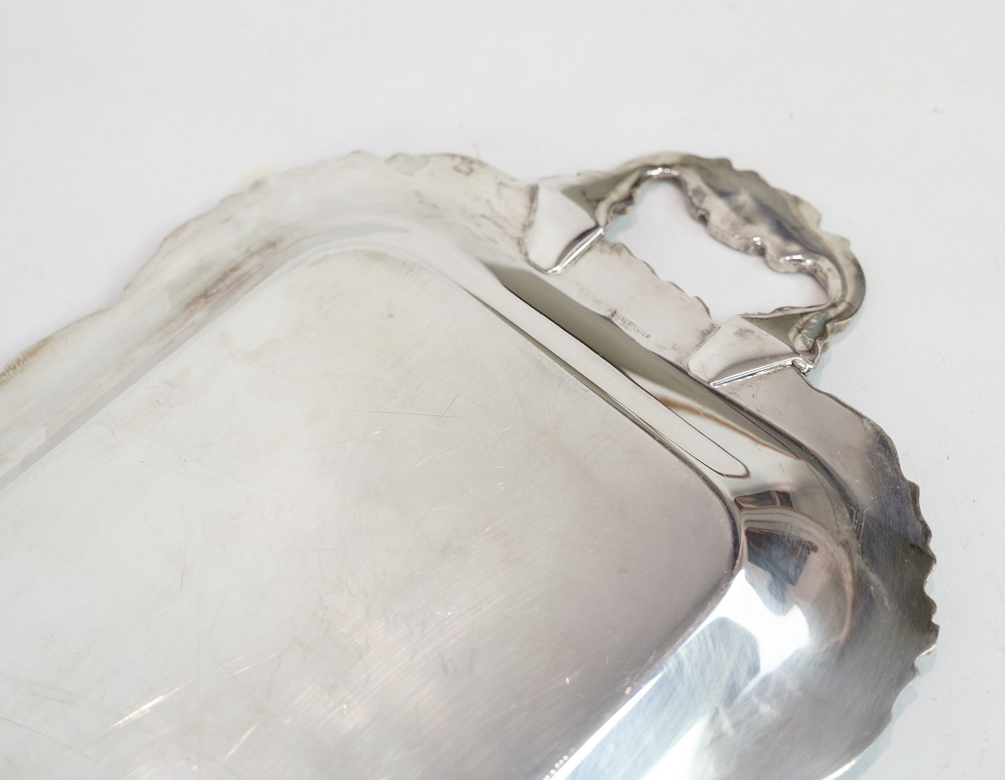 Elongated dish in silver-plated brass from around the 1930s.Dimensions in cm: H:4 W:63 D:27