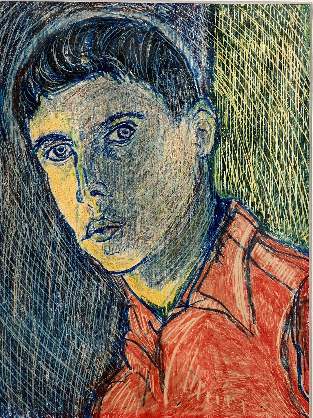 FL. Strange Oil Chalk Painting 1952. Framed with passsepartout in pine wood frame.Dimensions: 58 x 34 cm (43 x 34 cm)