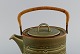 Jens H. Quistgaard (1919-2008) for Bing & Grøndahl. Rune teapot with wicker handle, sugar bowl and cream jug in glazed stoneware. 1960s / 70s.The teapot measures: 22 x 21 cm (incl. handle)